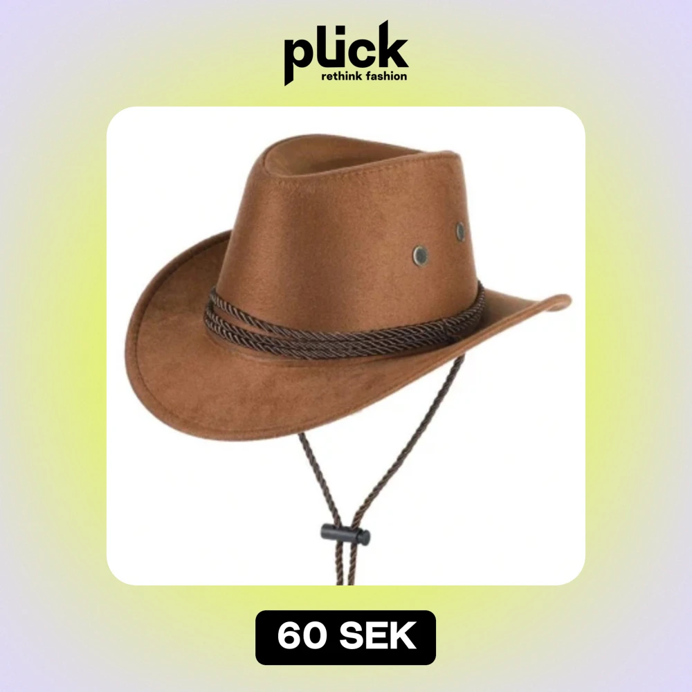 Snygg brun cowboyhatt i mocka med dekorativt flätat band runt kullen. Perfekt för cowboyfester eller som en cool accessoar till vardags. Hatten har en justerbar hakrem för bättre passform. Ett måste för alla som vill ha en touch av vilda västern i sin stil!