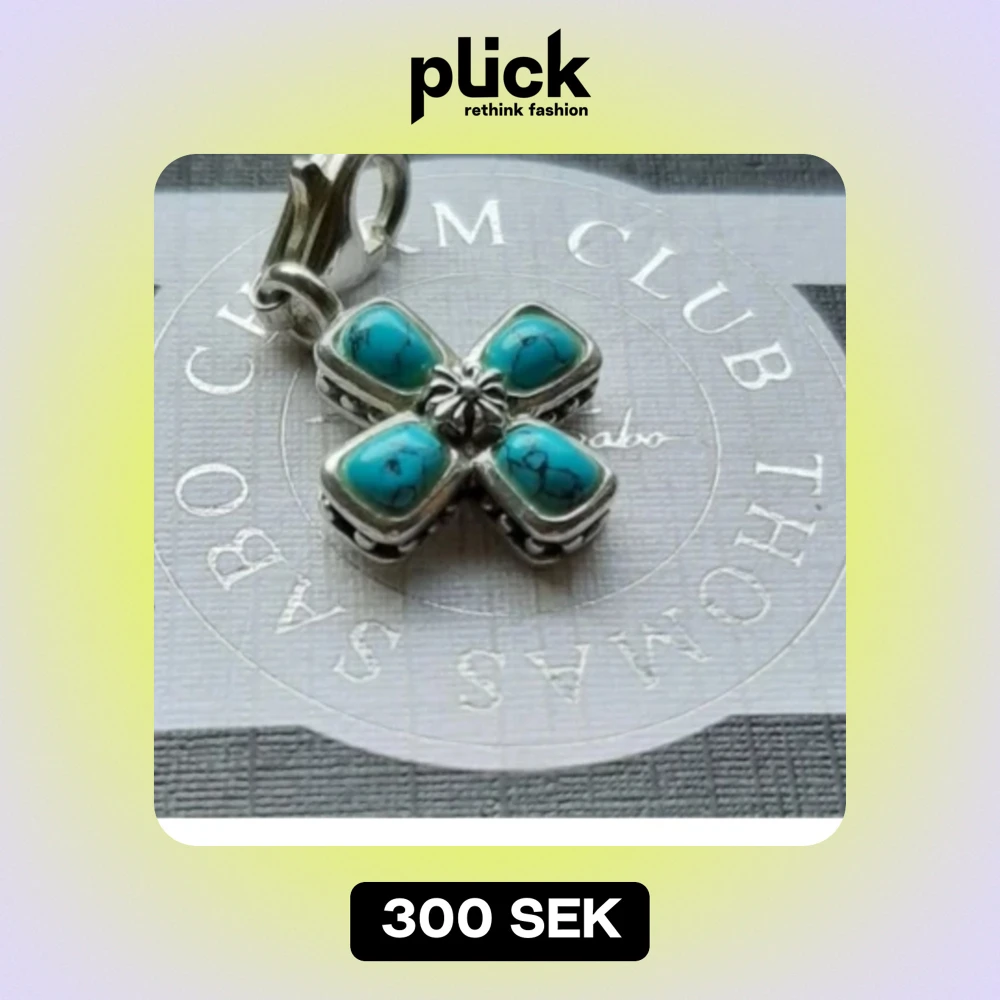 Thomas Sabo berlock, snyggt "kors" m turkosa stenar i fint begagnat skick. Ask/påse ingår ej. Kolla bilder o ställ ev frågor före bud. Frakt tillkommer.