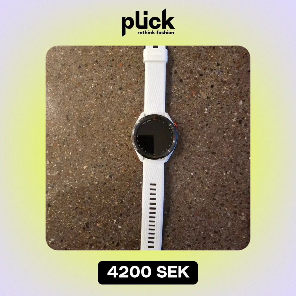 Garmin approach s62. Säljer en stilren vit smartklocka med ett bekvämt silikonarmband. Klockan har en rund urtavla med en modern design och är perfekt för både vardag och träning. Den har en slät yta och justerbart band för bästa passform.