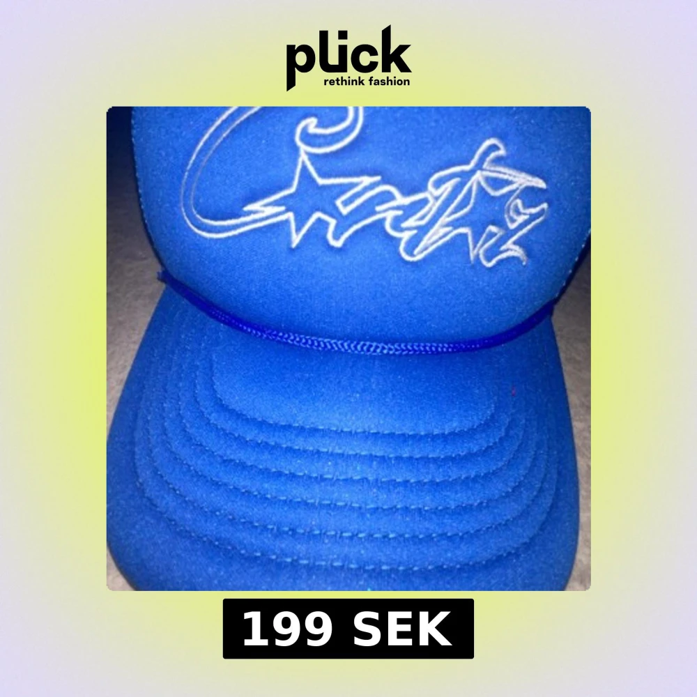 Snygg blå truckerkeps från Corteiz med vit broderad logga och stjärndetaljer framtill. Kepsen har mesh på baksidan för extra ventilation och en dekorativ blå snodd ovanför skärmen. Perfekt för dig som vill sticka ut med streetwear-vibe.