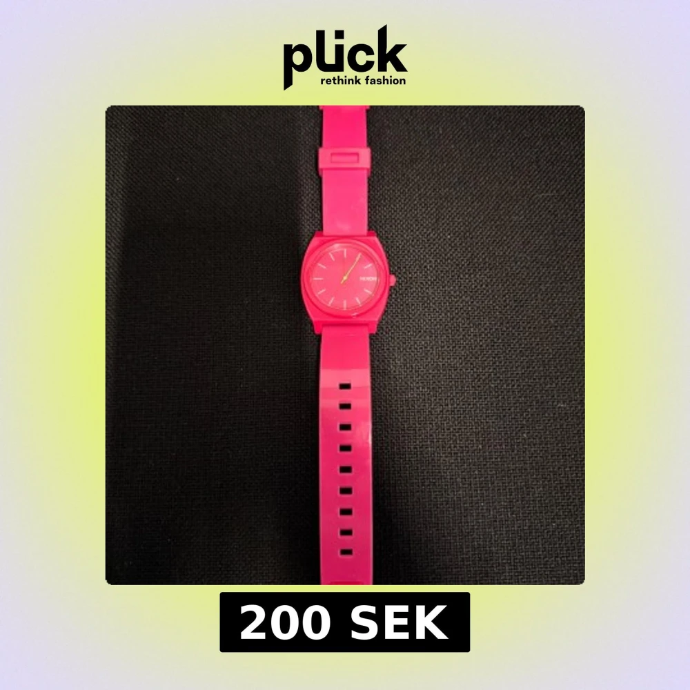 Säljer en snygg och färgstark Nixon Time Teller P klocka i helrosa design. Klockan har rund urtavla, minimalistiska vita markeringar och gröna visare. Boetten och armbandet är tillverkade i polykarbonat, vilket gör den lätt och bekväm på handleden.köpt i USA för många år sedan men inte blivit använd så mycket. Nytt batteri behövs!