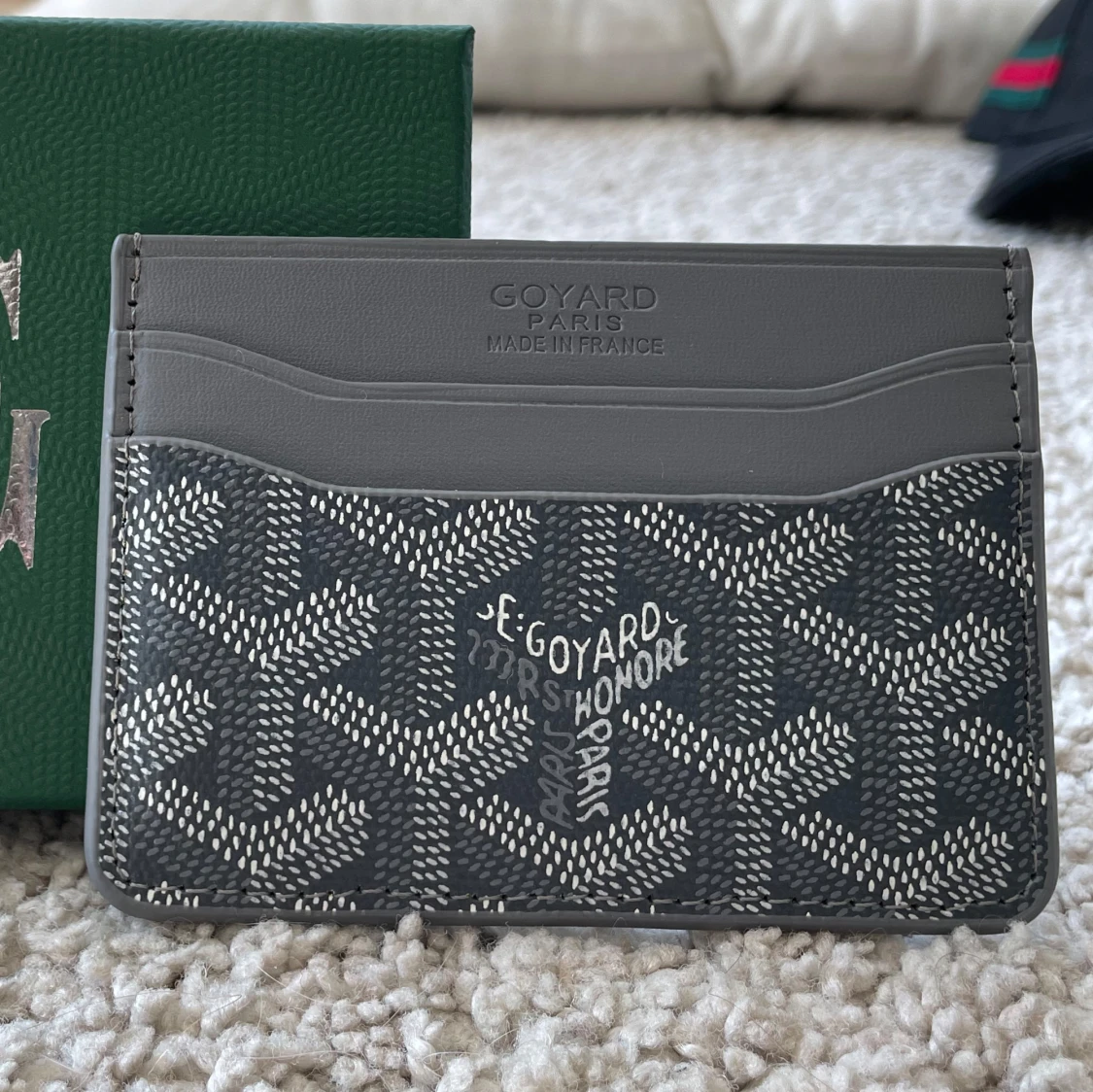 Säljer en stilren grå korthållare med snyggt mönster. Korthållaren har flera fack och är perfekt för dig som vill ha något både snyggt och praktiskt. Helt ny och kommer med originalask.🫡🤝