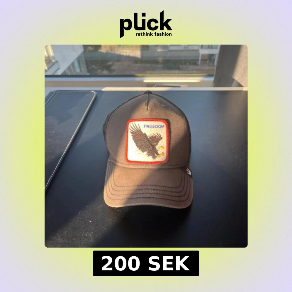 Snygg svart keps med ett broderat märke på framsidan som visar en örn och texten 'Freedom'. Kepsen har ett nätmaterial på baksidan för bättre ventilation och en böjd skärm. Perfekt för en avslappnad stil.