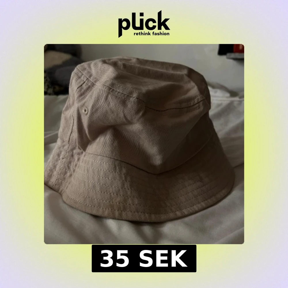 Säljer en stilren beige bucket hat i bomull. Köpt i Spanien med Klassisk form med bred brätte och sydda detaljer runt om. Perfekt accessoar för soliga dagar och enkel att matcha med olika outfits.