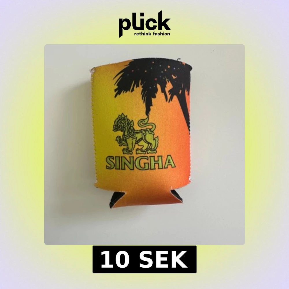 Färgglad dryckeshållare med Singha-logga och Thaiboat-motiv. Perfekt för att hålla drycken kall på stranden eller festen. Materialet är mjukt och flexibelt, med palmmotiv och solnedgång. Inga synliga defekter eller slitage.
