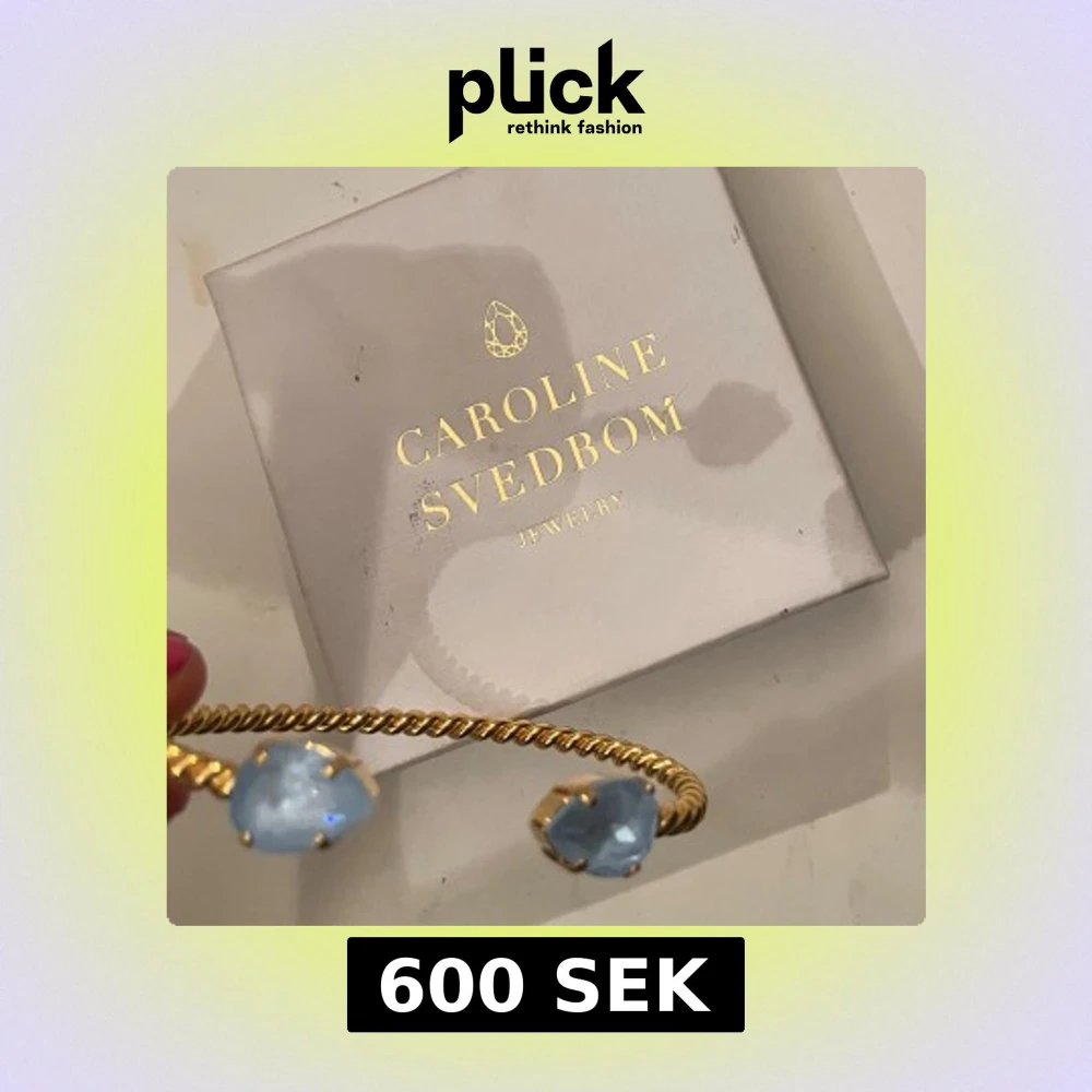 Helt nytt guldarmband elegant från Caroline Svedbom med två ljusblå stenar. Armbandet har en tvinnad design som ger en lyxig känsla. Jag säljer armbandet för jag har ett till och då kommer detta aldrig till användning
