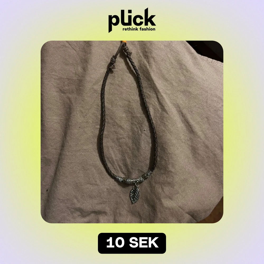 Betalas via swish! Snyggt flätat halsband i mörkbrunt med en silverfärgad lövberlock. Perfekt för en bohemisk stil eller som en subtil accessoar till vardagsoutfiten. Halsbandet har en enkel knytning och är lätt att justera i längd.