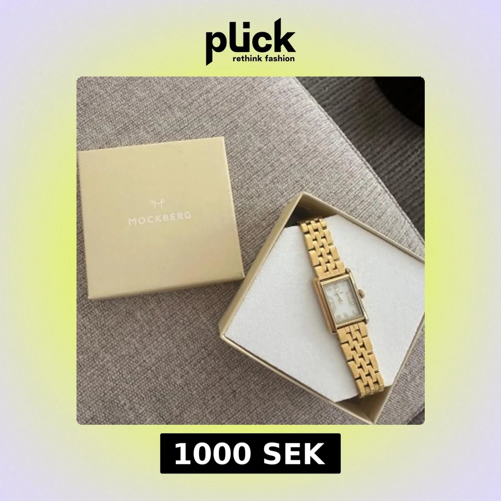Elegant guldfärgad klocka från Mockberg med rektangulär urtavla och romerska siffror. Armbandet är i metall med en klassisk länkdesign. Perfekt för en stilren look. Enbart använd 2 gånger då jag oftare använder andra klockor, den är för av i nyskick!