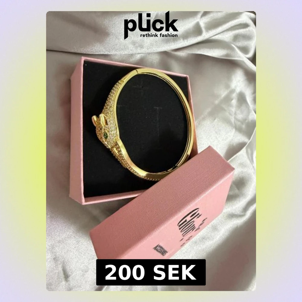 Unikt armband i guldton med leopardhuvud, täckt av glittrande stenar och gröna ögon. Designen är detaljerad och djurinspirerad, perfekt för dig som gillar statement-smycken. Kommer i en rosa presentask från Glow Accessories.