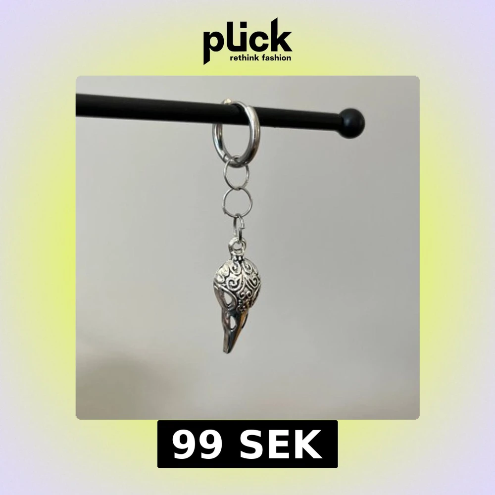 Unikt silverfärgat örhänge med ett detaljerat hänge i form av ett fågelhuvud. Hänget har ett intrikat mönster som ger en mystisk och elegant känsla. Perfekt för att ge din stil en unik touch.