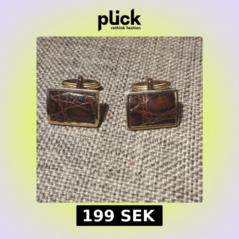Snygga rektangulära manschettknappar krokodil imitation med en brun yta och guldfärgad ram. Perfekta för att ge en elegant touch till din outfit. Nytt skick dock inte finns någon förpackning eller etikett.