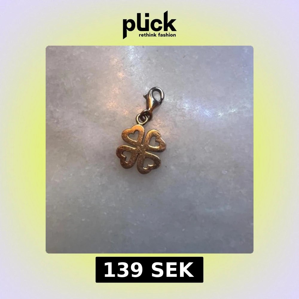Charmigt hänge i form av ett fyrklöver där varje blad är utformat som ett hjärta. Hängsmycket är i guldigrosé metall och har en smidig karbinhake som gör det enkelt att fästa på armband eller halsband. Perfekt detalj för att ge lite extra tur och kärlek till din look.