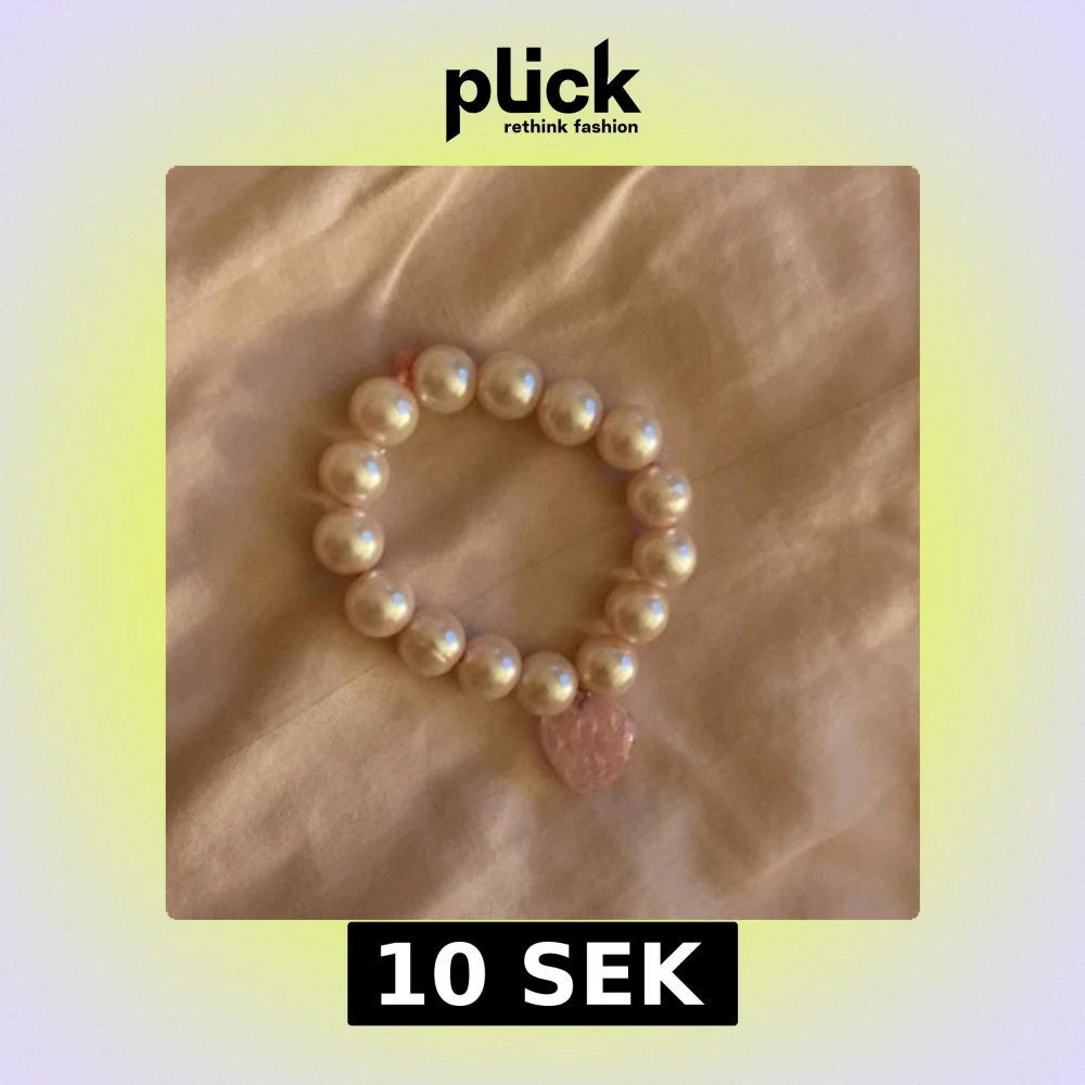 Superfint armband med stora ljus rosa pärlor och ett glittrigt rosa hjärta. Egen gjort armband!