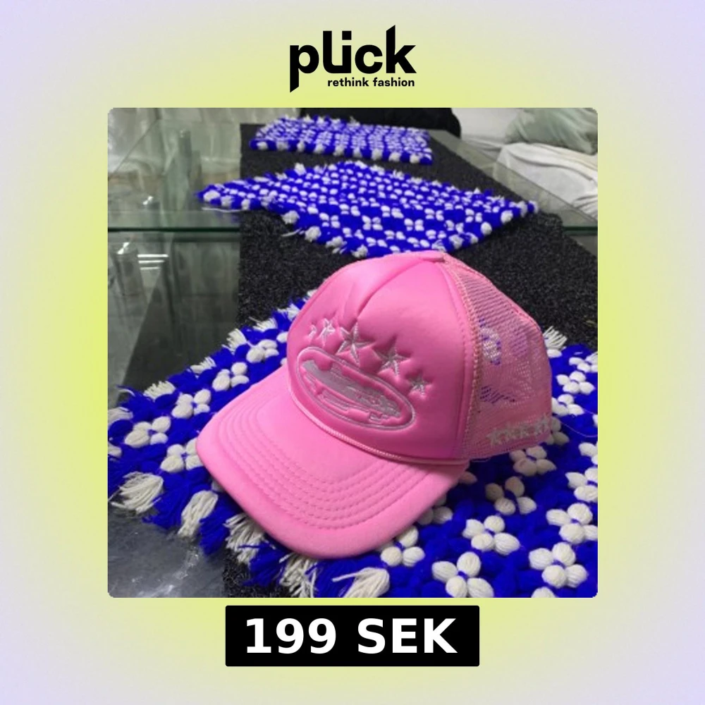 Snygg rosa truckerkeps med broderade stjärnor och motiv framtill. Kepsen har mesh på sidorna och bak för extra ventilation och en böjd skärm. Perfekt för dig som vill sticka ut med en färgglad accessoar.