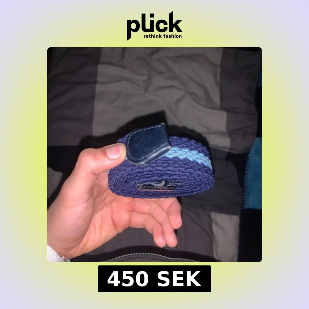 Snyggt mörkblått flätat bälte från Djurgården med en ljusblå rand längs mitten. Bältet har ett stilrent spänne i metall och avslut i mörkblått skinn. Perfekt för att ge outfiten en cool touch och funkar till både jeans och chinos.