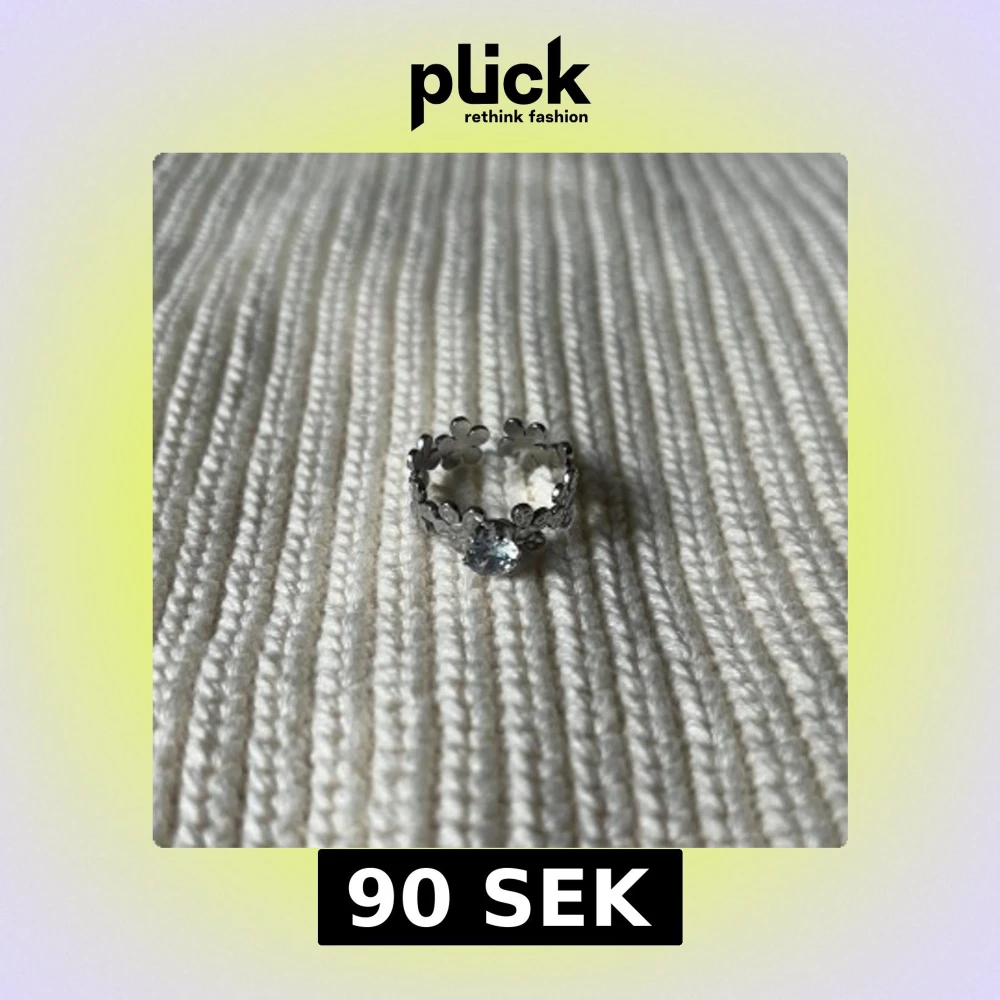 Ring med små blommor runt hela bandet och en klar sten framtill – romantisk och tidlös
