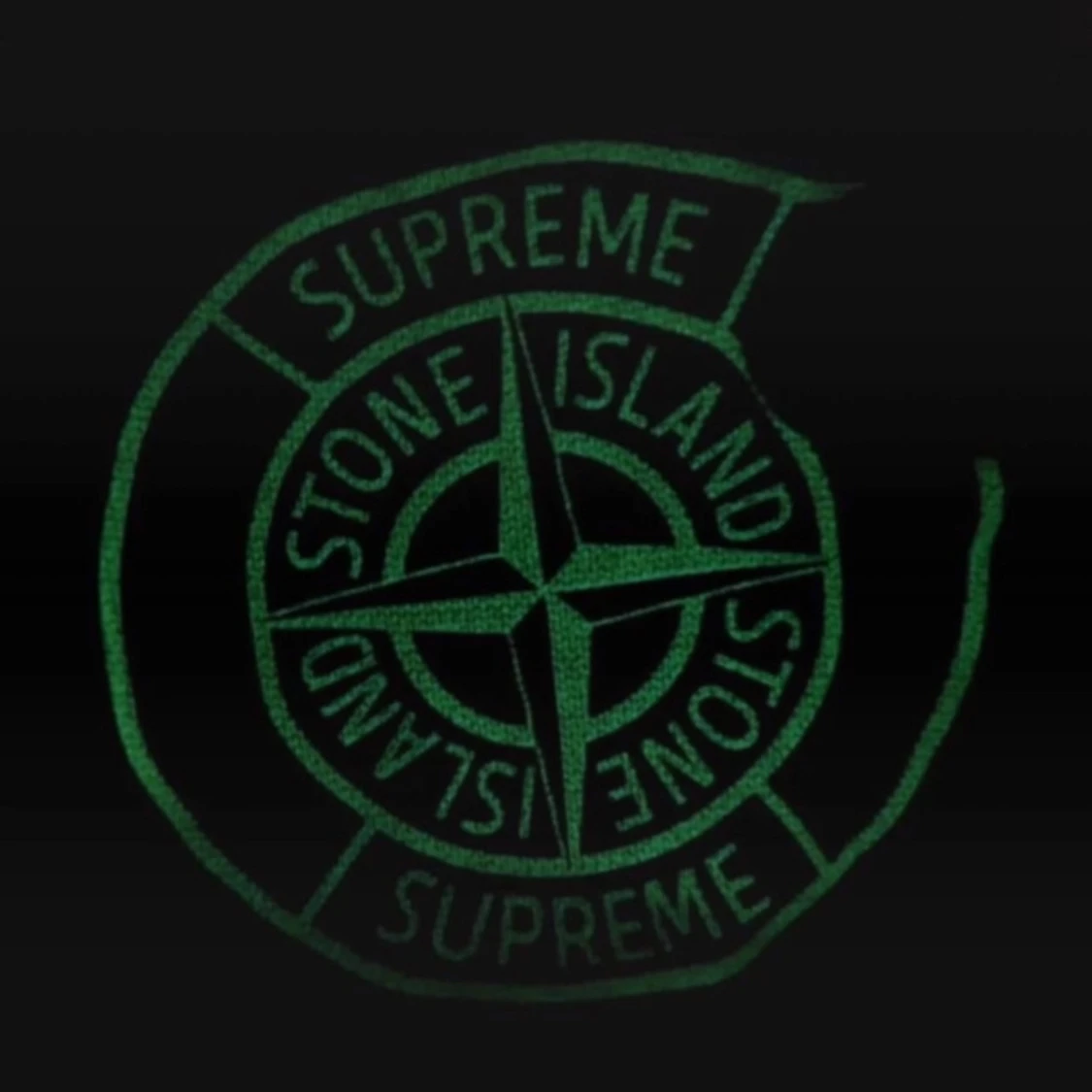 Säljer en svart balaclava från Stone Island x Supreme. Den är stickad och har en stor broderad logga framtill som lyser grönt i mörkret. Perfekt för vintern och håller dig varm med stil.