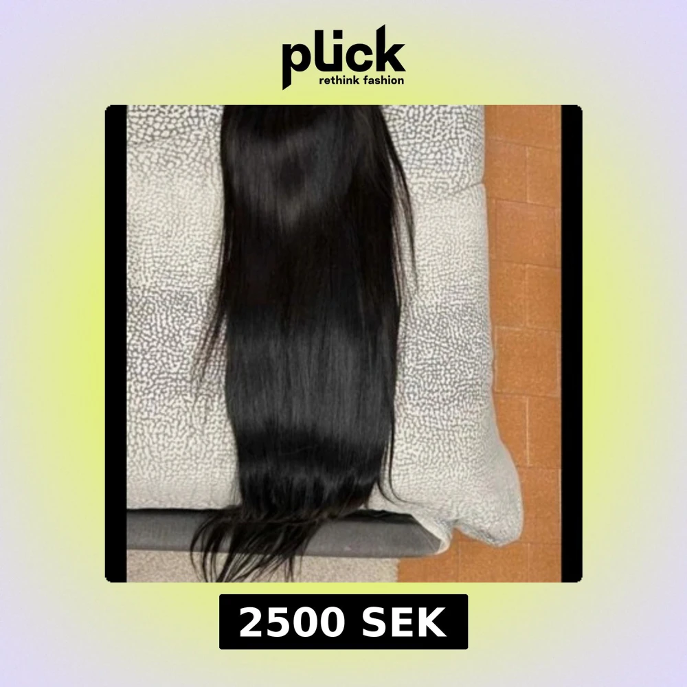Spetsperuk av äkta hår, 60 cm. Går därför att färga, platta och styla. I mycket fint skick. I mörkaste brun, går mot svart. 150 density. Går inte under mitt pris. Kostade mig 7000 ny.