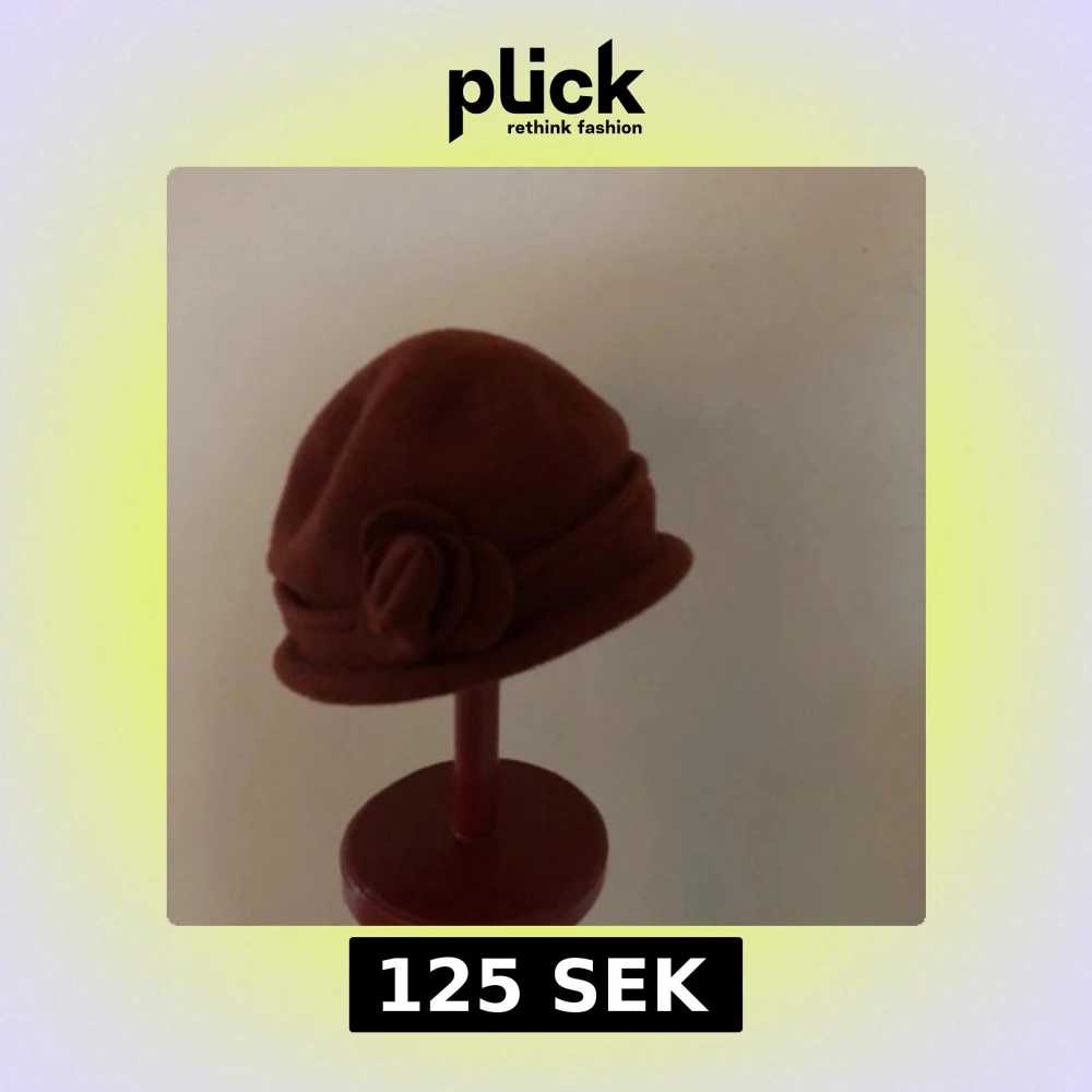 Elegant röd hatt med en dekorativ blomma på sidan. Perfekt för höst och vinter, tillverkad i ull.