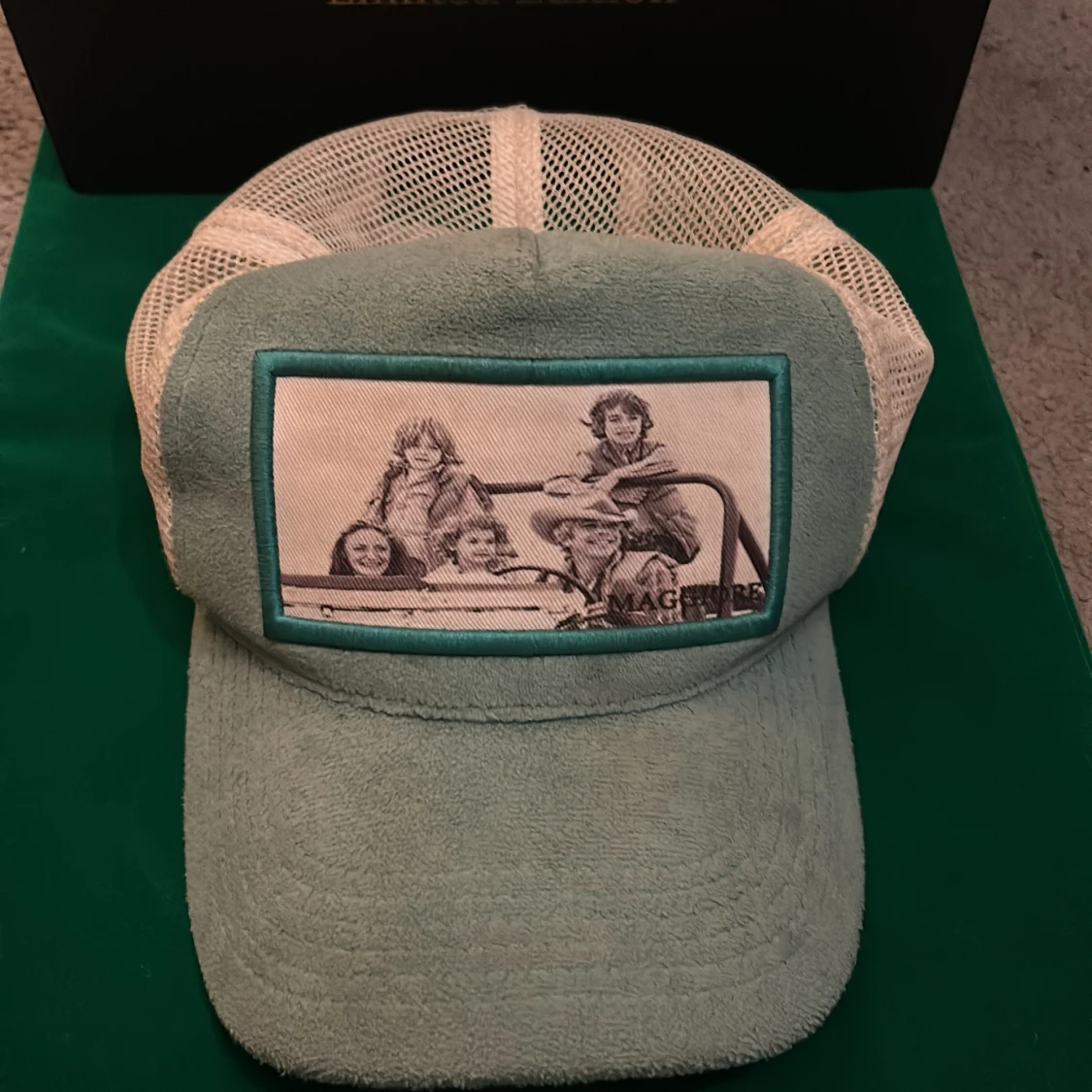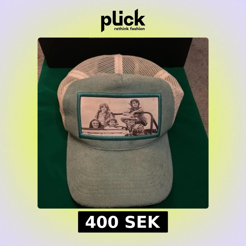 Säljer en sällsynt keps från Maggiore, limited edition S2. Kepsen har en grön front i frottéliknande material, vit mesh baktill och justerbar snapback. På framsidan finns en stor patch med svartvitt motiv av personer. Perfekt för dig som vill sticka ut med en cool accessoar. Kepsen är lite smutsig på insidan men inget som märks när den sitte på. Med kepsen tillkommer en låda och en dustbag se bild 3 och 4!