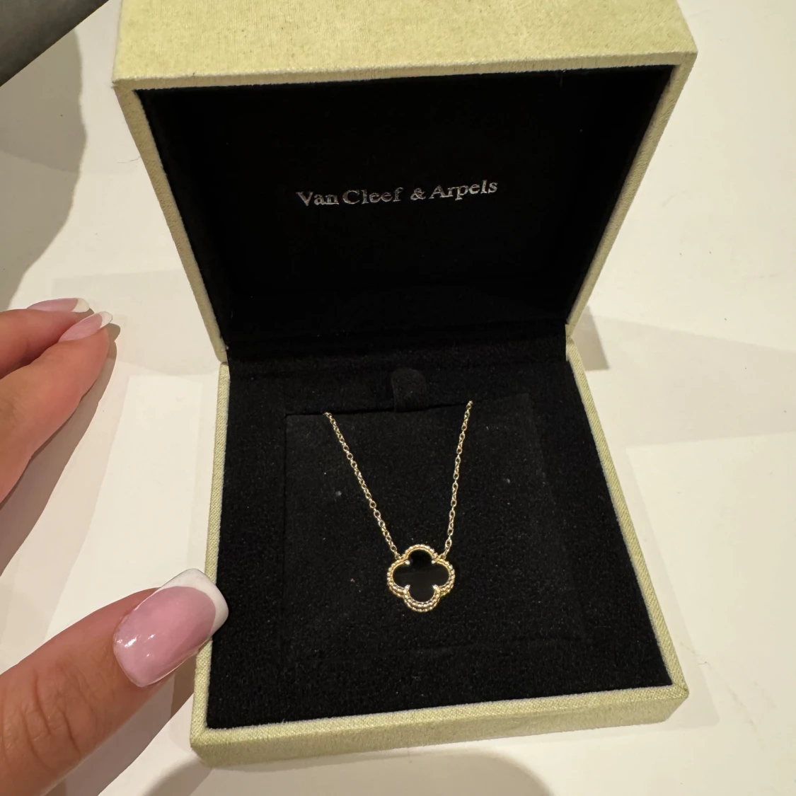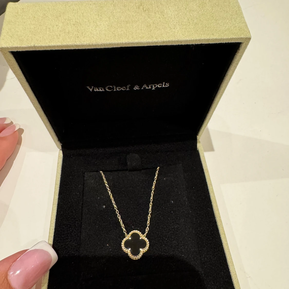 Supersnyggt nytt halsband som använts en gång och är i princip helt nytt. Kedjan är tunn och elegant, och hänget är tillverkat i äkta silver men doppat i guld därav den gulda färgen!