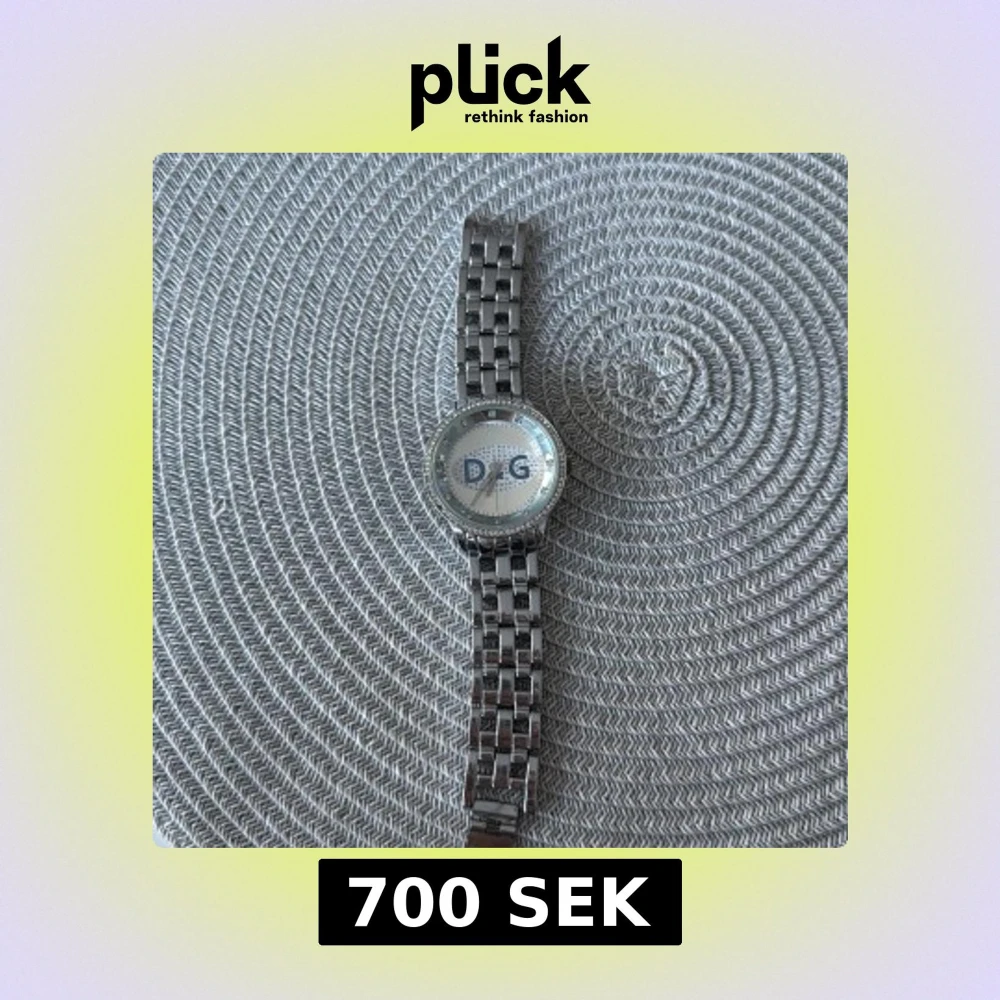 Snygg klocka från D&G i silverfärg med länkarmband i metall. Urtavlan är vit med stora D&G-bokstäver och har glittrande stenar runt boetten. Perfekt accessoar för att lyfta din outfit.