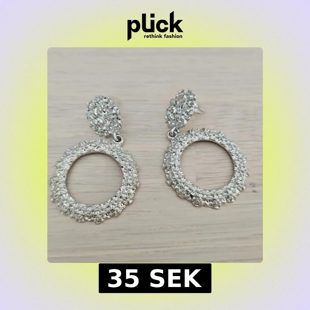 Snygga örhängen i silverfärg med glittrig yta och rund, öppen design. Örhängena har en texturerad, nästan bubblig kant och sitter med klassisk stiftbaksida. Perfekta för att ge din look lite extra bling och cool vibe.