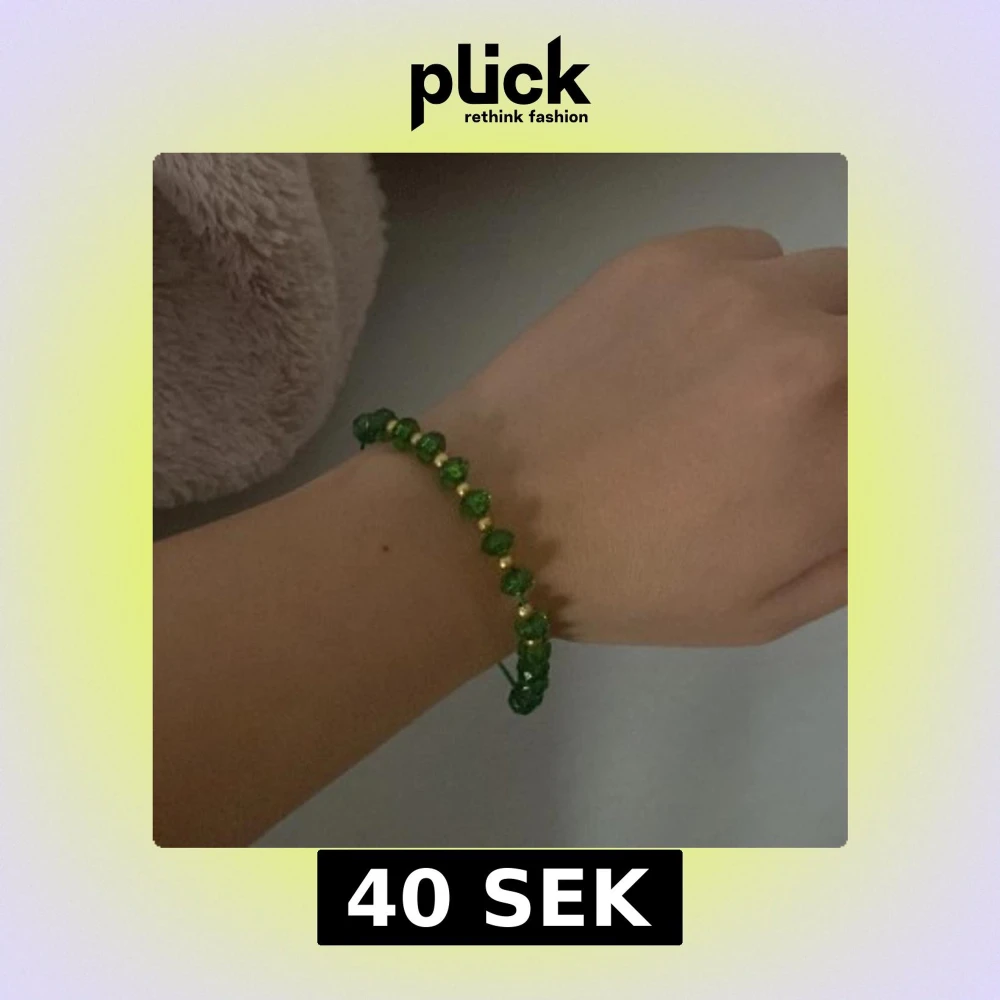 Snyggt armband med gröna pärlor och små guldfärgade detaljer. Pärlorna är facetterade och ger ett glittrigt intryck. Perfekt accessoar för att lyfta din outfit med lite färg och bling.