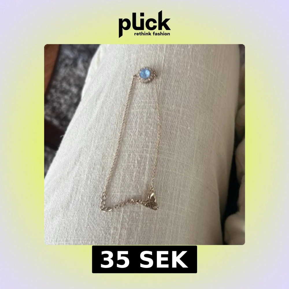 Snyggt och tunt armband i guldfärg med en rund blå sten i mitten, omgiven av små glittrande detaljer. Perfekt för dig som gillar stilrena smycken med en touch av färg. Kedjan är tunn och smidig, vilket gör det lätt att bära varje dag.