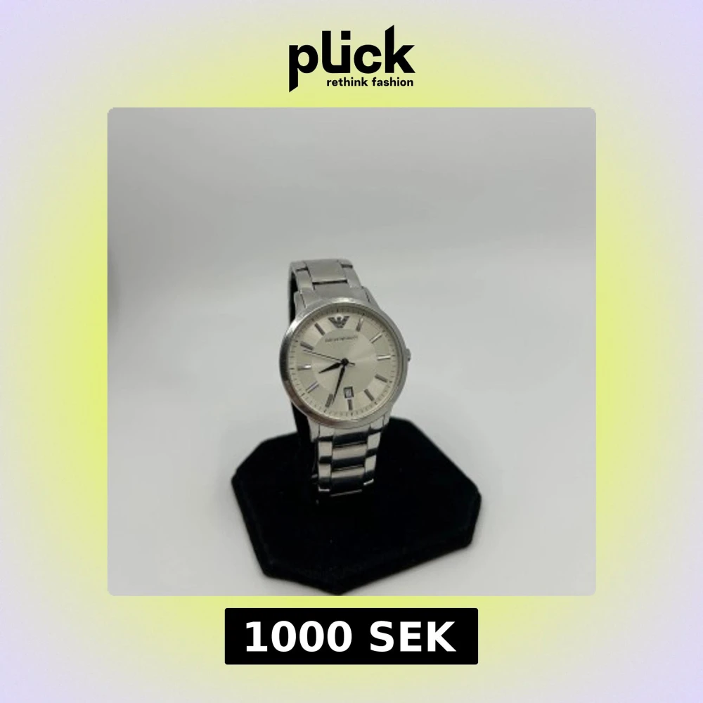 Stilren klocka från Emporio Armani i silverfärgat rostfritt stål. Klassisk rund urtavla med datumvisning och diskreta indexmarkeringar. Länkar i metall ger en clean och modern look. Perfekt accessoar för dig som gillar minimalistisk design.