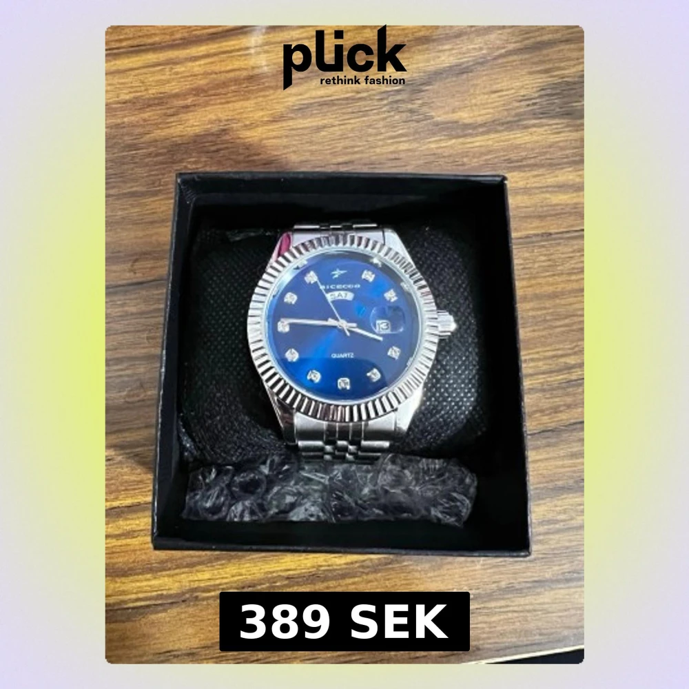 Stilren klocka med blå urtavla och silverfärgad jubilee länk i stainlessteel. Urtavlan har glittriga stenar som timmarkeringar, dag- och datumvisning samt en räfflad bezel. Klockan kan minskas både genom att ta ut länkar och minskas vid claspen. Klockan är icke använd! Priset kan diskuteras!