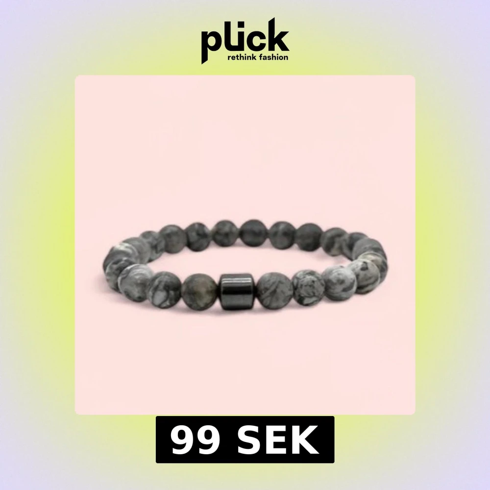 Elastiskt armband med grå marmorerade pärlor och en central Hematit. Passar alla och matchar till mer!!🤩