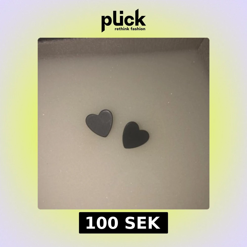 Säljer ett par stilrena svarta hjärtformade örhängen. Perfekta för att ge en subtil men elegant touch till din outfit. De är små och lätta, vilket gör dem bekväma att bära hela dagen.