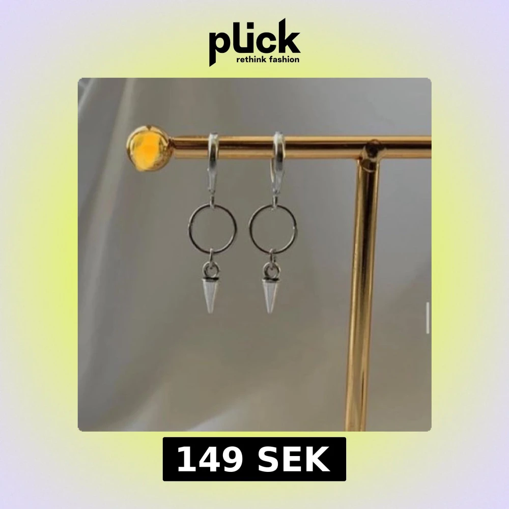 Snygga silvriga örhängen med rund ring och ett hängande konformat smycke. De har en minimalistisk och edgy vibe, perfekta för att lyfta din stil med en cool detalj. Passar dig som gillar unika accessoarer.