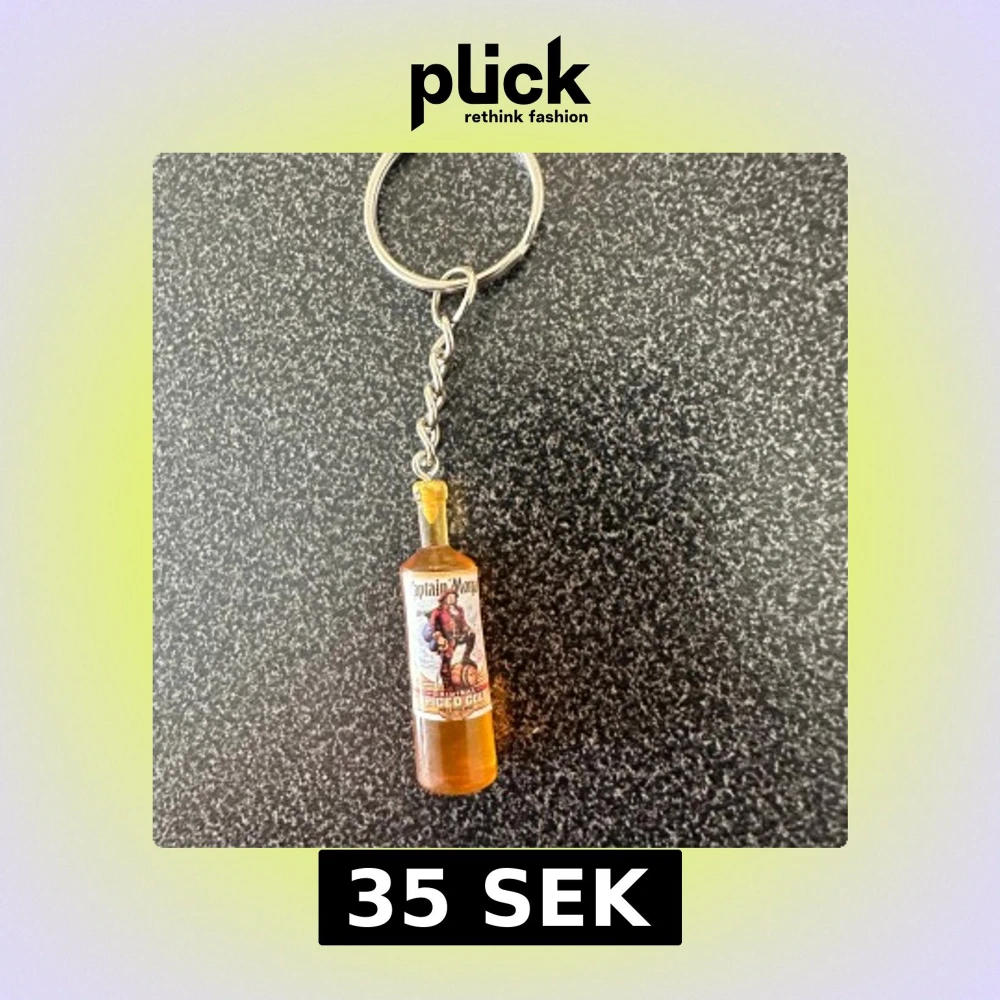 Cool accessoar i form av en miniatyrflaska Captain Morgan Spiced Gold som nyckelring. Flaskan är brun med detaljerad etikett och sitter fast i en metallkedja med ring. Perfekt för dig som gillar unika detaljer!