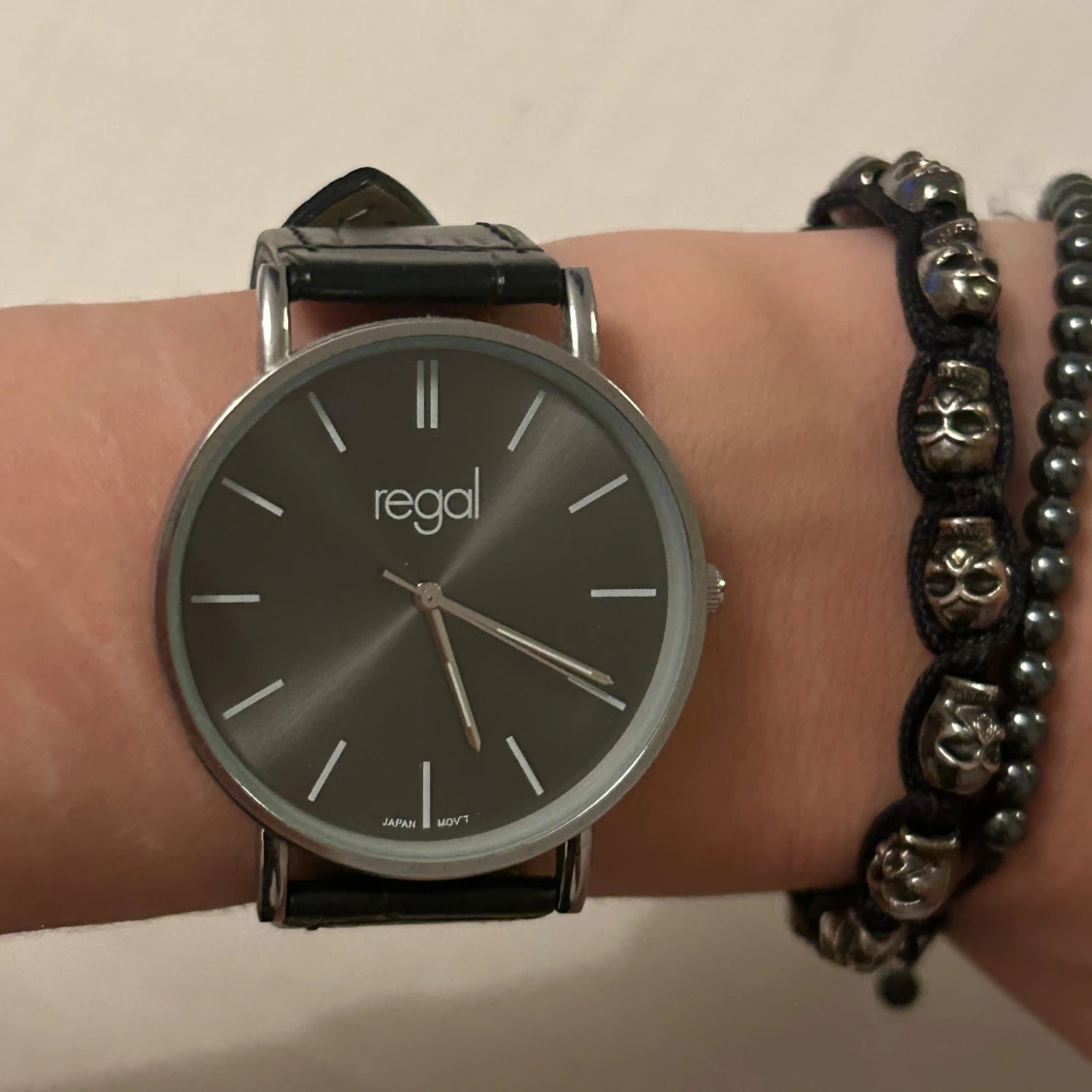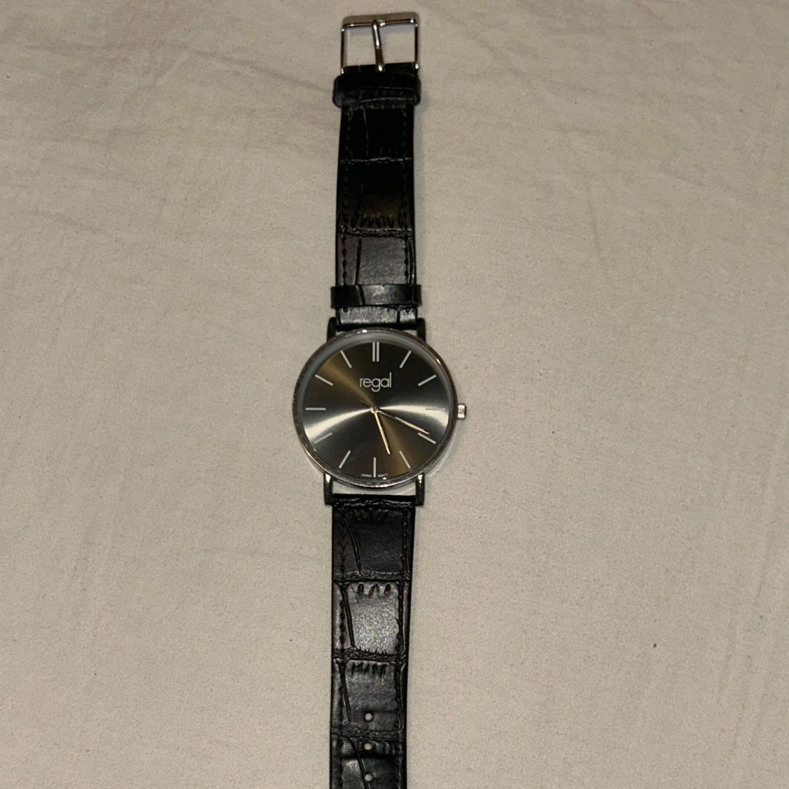 Svart klocka från Regal. Batterier behövs bytas.