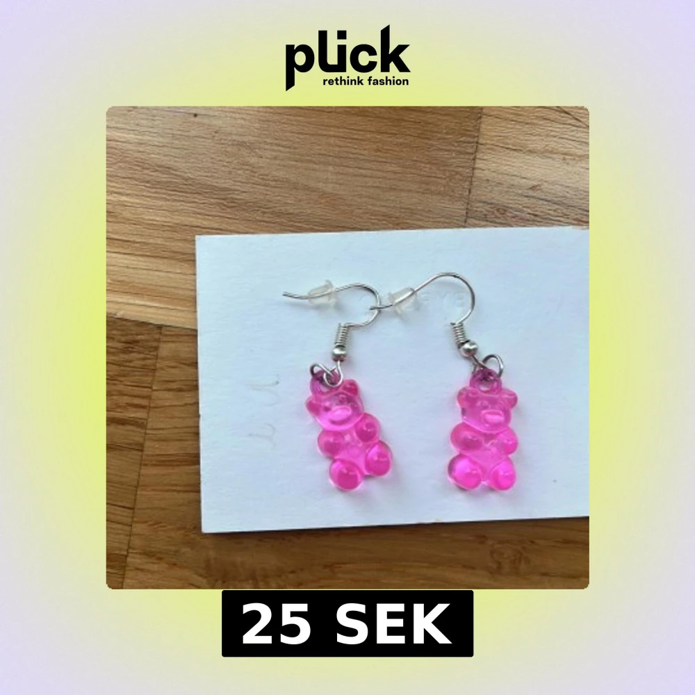 Supergulliga örhängen med rosa gelébjörn-berlock i plast. Perfekt för dig som vill ha något lekfullt och färgglatt! Hängande modell med silvriga krokar och transparenta pluppar. Sött och trendigt accessoar som ger din look en rolig twist. Jag själv är nickelallergiker och har inte haft några problem.