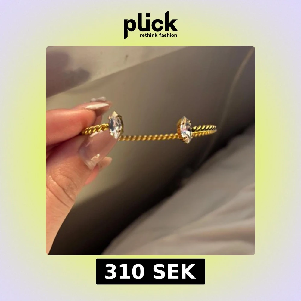 Snyggt armband i guldton med tvinnad design och två stora, gnistrande kristaller i varje ände. Perfekt accessoar för att lyfta din outfit med lite extra bling och stil.