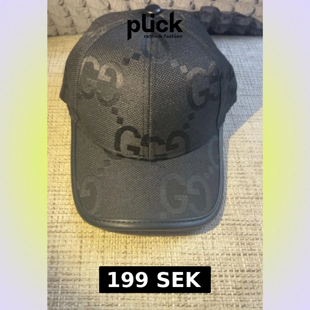 En svart keps med ett GG mönster