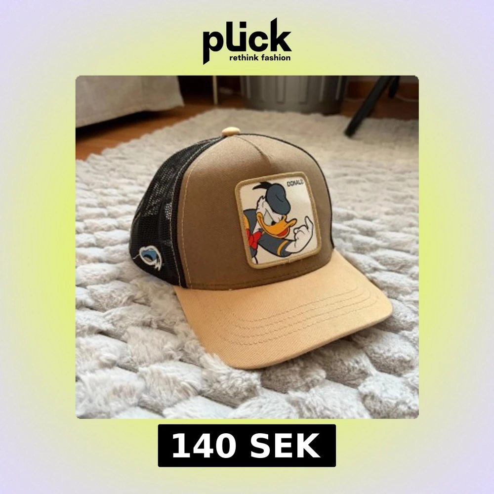 Snygg keps från Capslab x Disney med Kalle Anka-motiv framtill. Framsidan är beige och brun, baksidan är svart mesh för extra ventilation. Broderad detalj på sidan och justerbar passform.