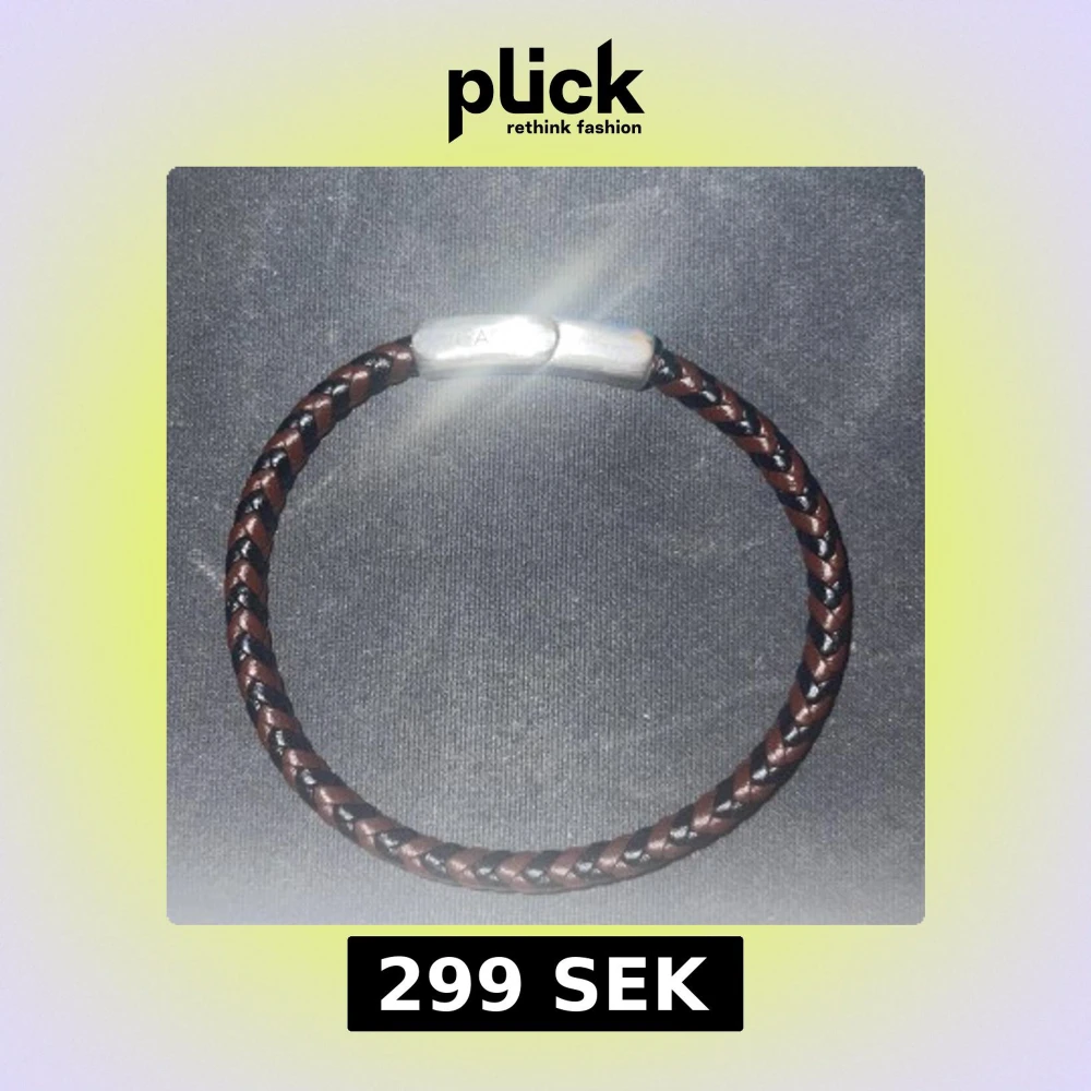 Snyggt flätat armband i brunt och svart med ett stilrent magnetlås i silverfärg. Aldrig använt. Perfekt accessoar för en cool och avslappnad stil. 499kr nypris.