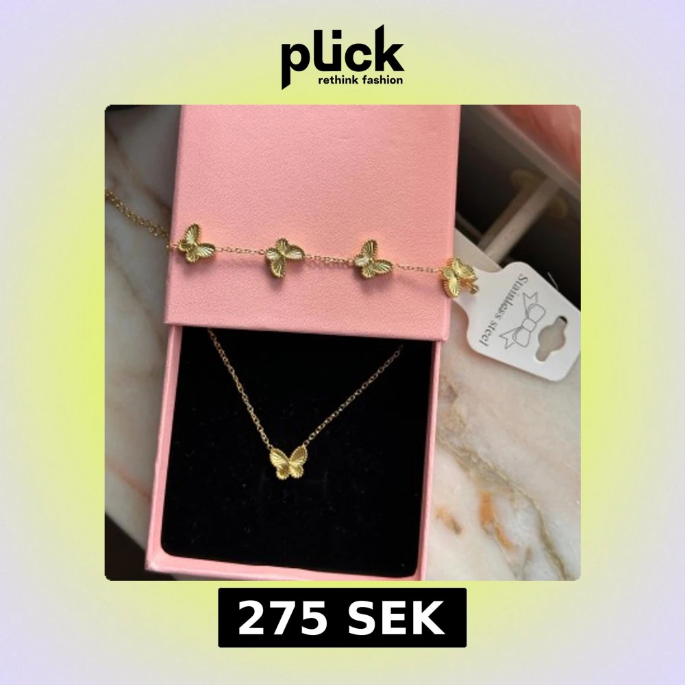Superfint halsband i guldton med flera detaljerade fjärilar. Kedjan är tunn och smidig, och fjärilarna har en snygg struktur som fångar ljuset. Perfekt accessoar för dig som vill sticka ut med något unikt och trendigt.