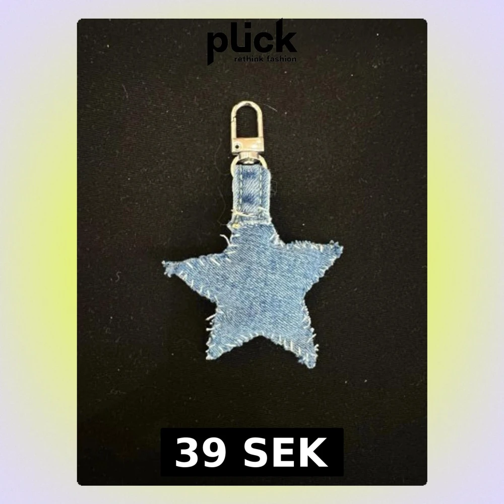 Säljer en cool nyckelring i ljusblått jeanstyg, formad som en stjärna med råa kanter och synliga sömmar. Perfekt att hänga på väskan eller nyckelknippan för en personlig touch.