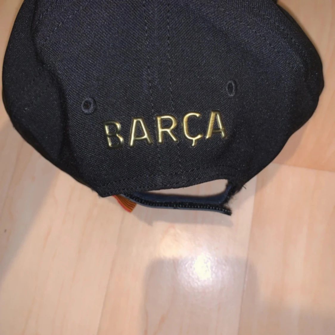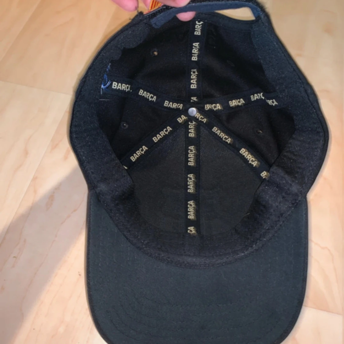 Snygg svart keps från FC Barcelona med guldigt klubbmärke framtill och texten 'BARÇA' broderad i guld på baksidan. Justerbar passform och detaljer med Barça-tryck på insidan. Perfekt för dig som älskar fotboll och vill visa ditt stöd för laget.