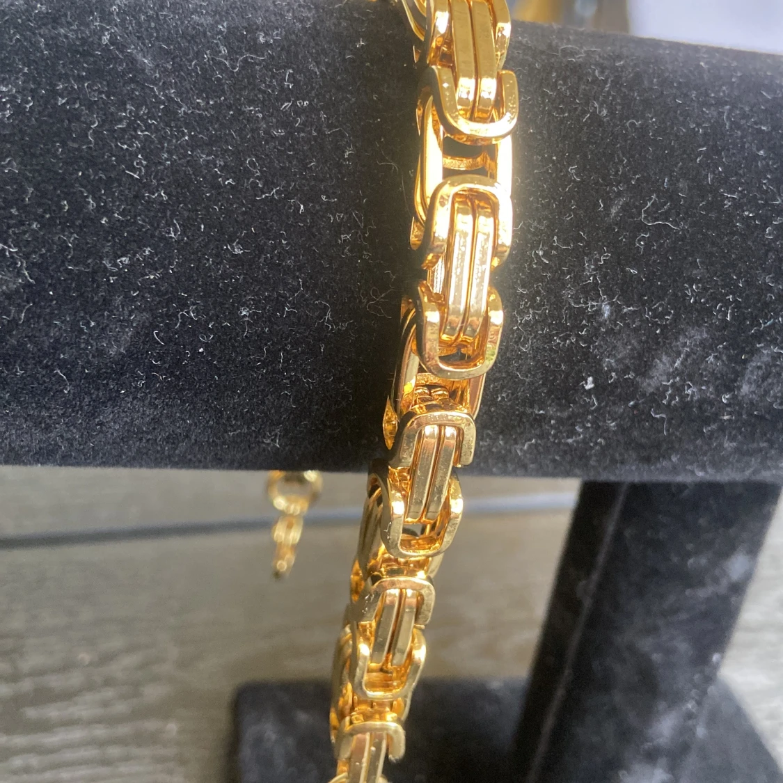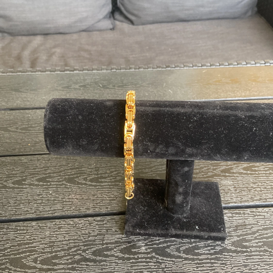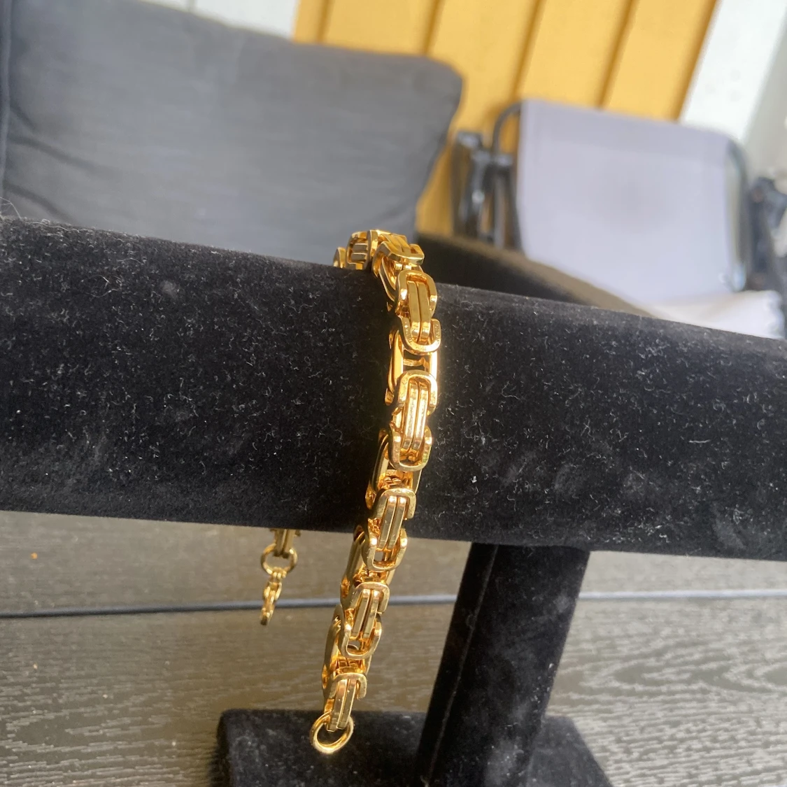 Snyggt guldigt armband med chunky länkar som ger en cool och modern vibe. Länkarna är rektangulära och har en blank finish som verkligen poppar. Perfekt för dig som vill ha ett statement piece till din outfit. Lätt att matcha med andra smycken och accessoarer.