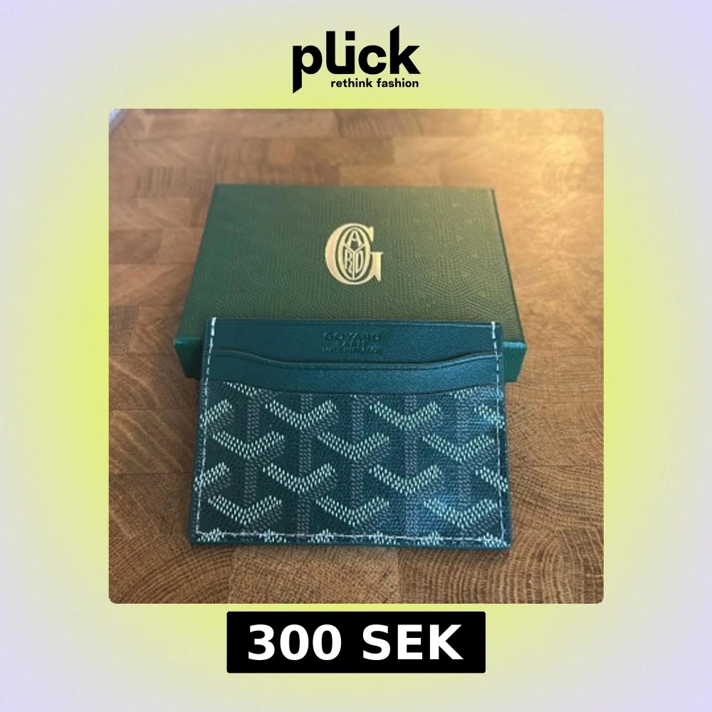 Säljer en stilren grön kortplånbok från Goy4rd med deras ikoniska grafiska mönster i vitt och grått. Plånboken har flera kortfack och är tillverkad i exklusivt skinn med snygga kontrastsömmar. Perfekt för dig som vill ha något både lyxigt och praktiskt.
