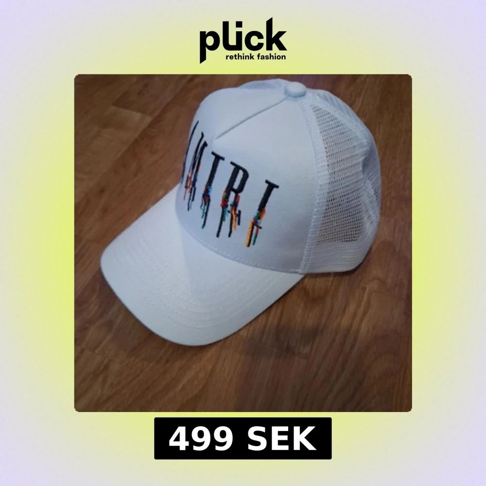 Snygg vit keps från Amiri med broderad logga framtill i svart och färgglada detaljer. Kepsen har meshpaneler på sidorna och bak för extra ventilation samt justerbar snapback. Perfekt för en streetwear-look.