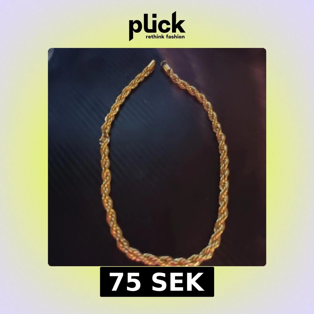 Elegant guldigt halsband med en flätad design. Perfekt för att ge en touch av glamour till din outfit. Passar både till vardag och speciella tillfällen.