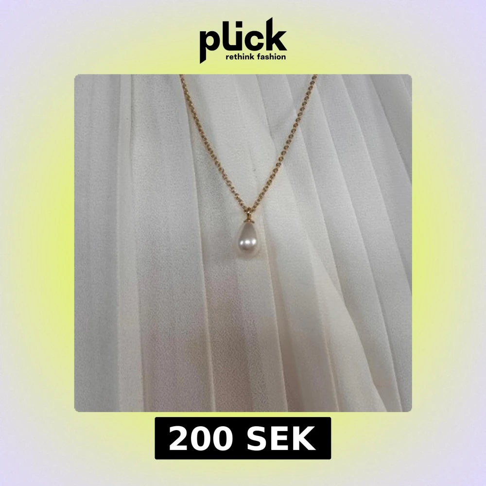 Ett halsband med guldfärgad kedja och en droppformad vit pärla som hänge. Från snö of sweden och endast använd en gång. Dustbag medföljer. Nypris 300