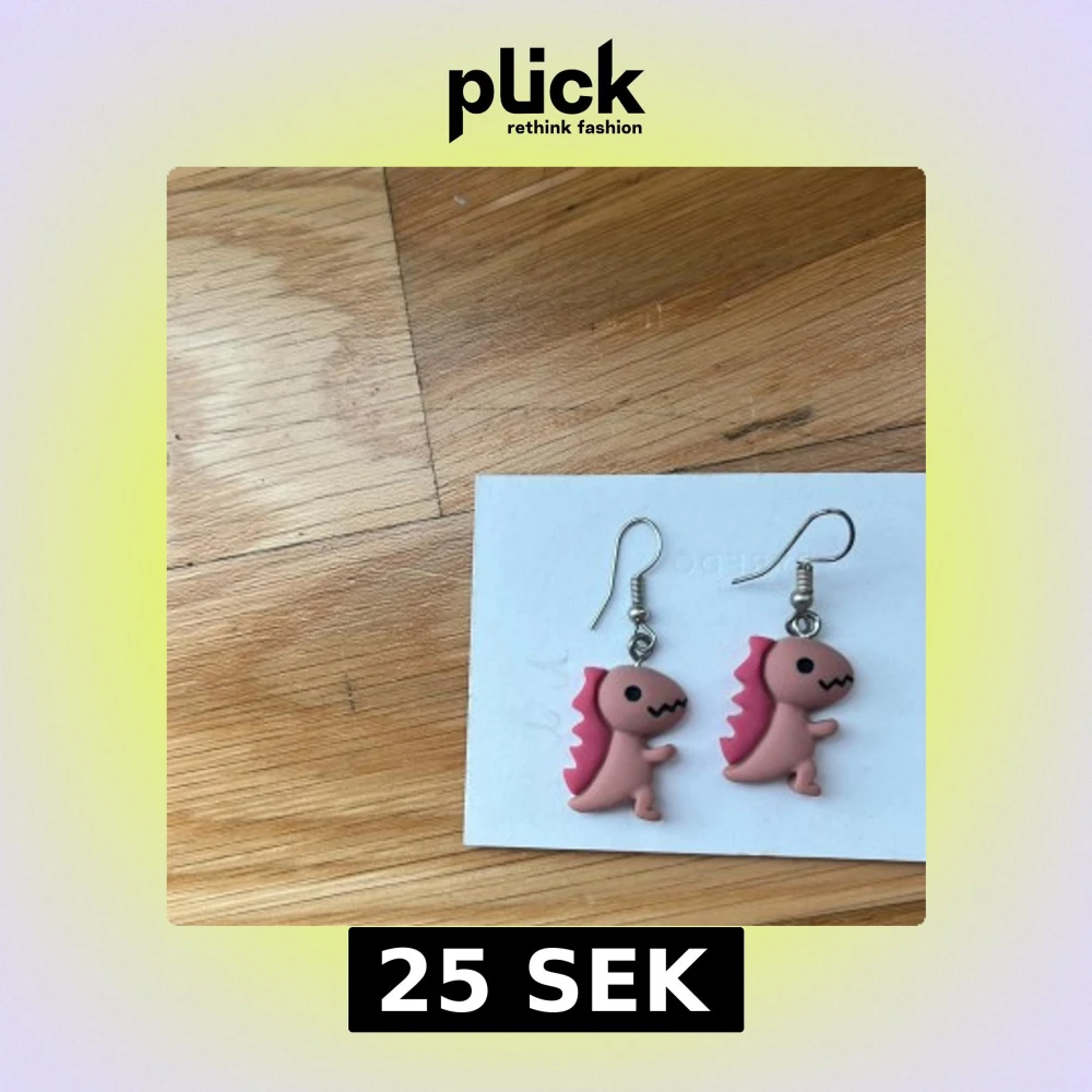 Supergulliga örhängen med små dinosaurier i rosa och ljusrosa färg. De har svarta detaljer för ögon och mun, och hängs på klassisk krok. Perfekt för dig som vill sticka ut med ett lekfullt smycke! Jag själv är nickelallergiker och har inte haft några problem.